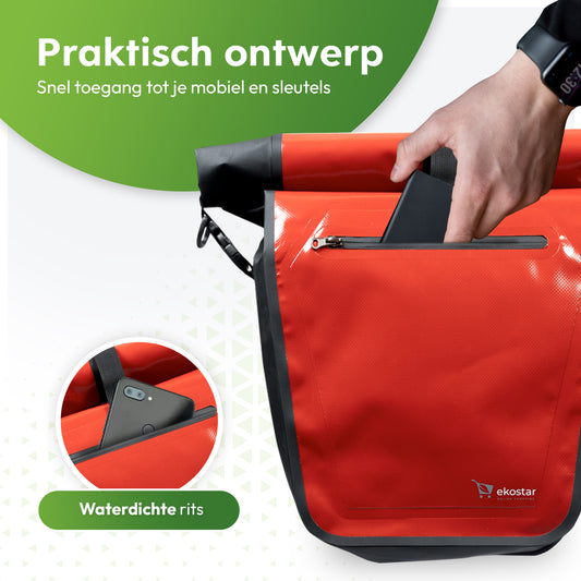 Ekostar online shopping - 2in1 Fietstas - Waterdicht - Duurzaam - TPU - Rood
