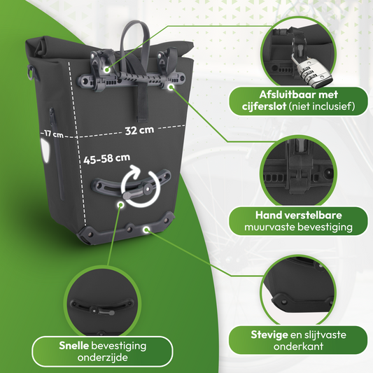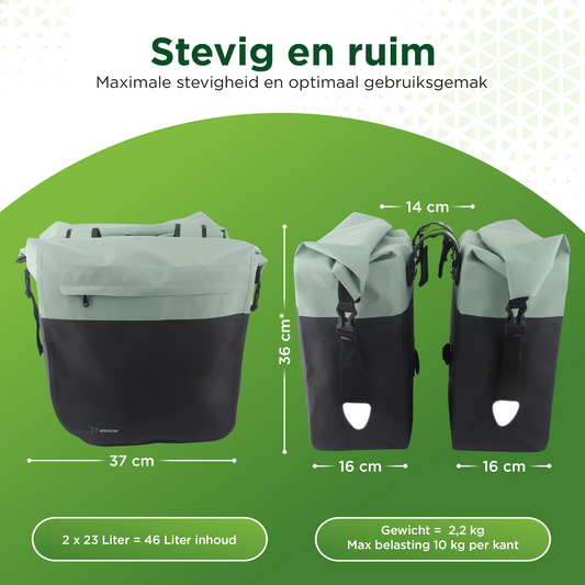 Ekostar® - Dubbele Roltop Fietstas - 100% Waterdicht - 46L - Fietstassen electrische fietsen