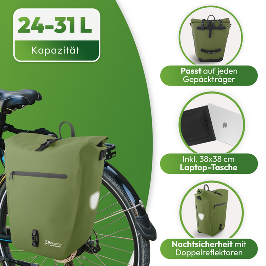 Ekostar 2in1 fietstas- Duurzaam - TPU - Waterdicht - Enkele fietstas - Olijf groen